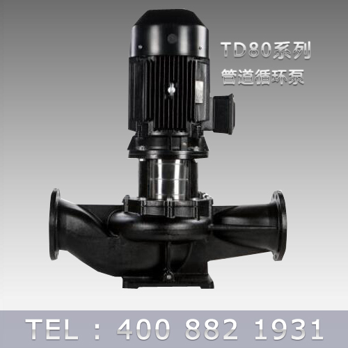 TD80系列單級管道離心泵,配有標準電 機和機械密封。此類產品的結構與相近類型產品相比,更不易受到泵送液體中雜質的影響。產品設計為頂部可拉出的拆裝形式,其可 以在不影響管路系統的情況下對泵進行維修。所有泵采用創新式便拆式機械密封,更好機械密封無需拆卸電機。